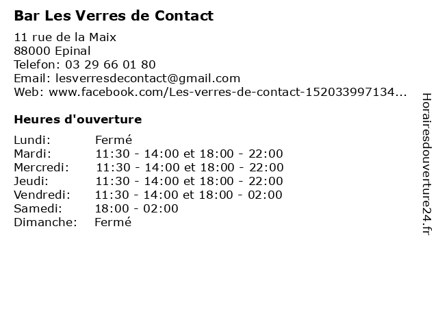 | Vendredi | 11:30-14:00 et 18:00-02:00 |
