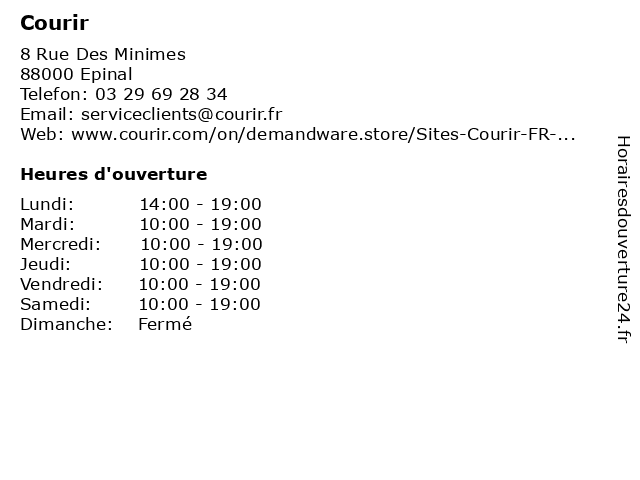 Horaires d'ouverture |