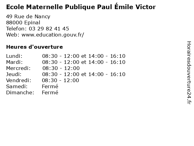 1 Ecole Elementaire Publique Paul Émile Victor (Distance: 0,00 km) 49 Rue de Nancy, 88000 Epinal cours, ecole, education, elementaire, paul, publique, services, victor, Émile, école, élémentaire 2 Groupe Victor Hugo Mutuelle (Distance: 0,79 km) 9 Avenue Victor Hugo, 88000 Epinal assurance, groupe, habitation, hugo, mutuelle, protection, prévoyance, santé, senior, victor 3 Ecole Elementaire Publique Émile Durkheim (Distance: 0,79 km) 2 Rue Durkheim, 88000 Epinal cours, durkheim, ecole, education, elementaire, publique, services, Émile, école, élémentaire 4 Ecole Maternelle Publique Victor Hugo (Distance: 0,82 km) 2 Avenue Victor Hugo, 88000 Epinal cours, ecole, education, hugo, maternelle, publique, services, victor, école 5 Ecole Elementaire Publique Victor Hugo (Distance: 0,82 km) 2 Avenue Victor Hugo, 88000 Epinal cours, ecole, education, elementaire, hugo, publique, services, victor, école, élémentaire 6 Centre de Vaccination COVID-19 - Centre Hospitalier Émile Durkheim (Distance: 0,95 km) 3 Avenue Robert Schuman, 88000 Épinal 19, centre, covid, covid 19, covid19, de, durkheim, hospitalier, médecin, médecine, médical, test, vaccin, vaccination, vaccins, émile |
