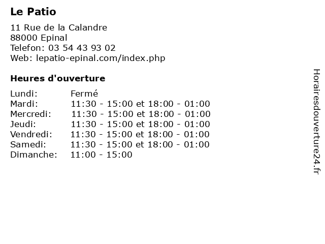 | Mardi | 11:30-15:00 et 18:00-01:00 |