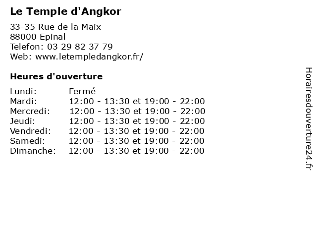 | Mardi | 12:00-13:30 et 19:00-22:00 |
