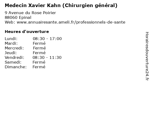 | Lundi | 08:30-17:00 |