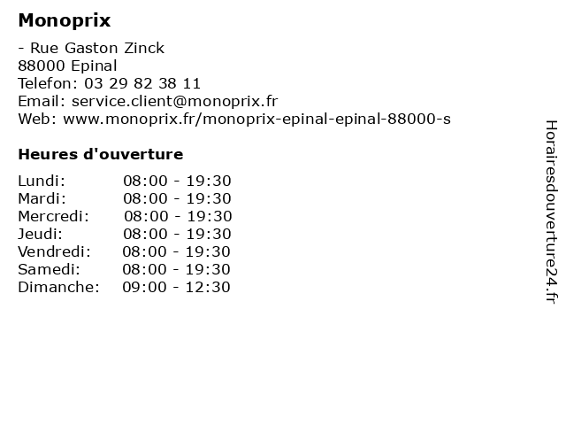 | Lundi | 08:00-19:30 |