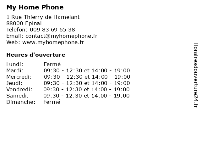 | Mardi | 09:30-12:30 et 14:00-19:00 |