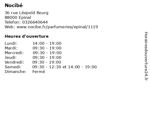 | Samedi | 09:30-12:30 et 14:00-19:00 |