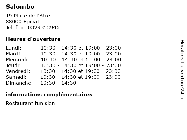 | Mardi | 10:30-14:30 et 19:00-23:00 |
