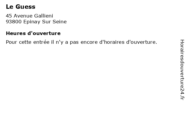 2 Guess Accessoires (Distance: 6,98 km) 23 rue Madeleine, 93300 Aubervilliers accessoires, bijoux, femme, guess, mode, montres 3 Guess (Distance: 7,86 km) 31 Rue d Alsace, 92300 Levallois alimentation, beauté & santé, culture & loisirs, enfants, guess, high-tech, maison & déco, mode, restaurants 4 Guess Accessoires (Distance: 8,84 km) 23 Rue Madeleine Vionnet, 93300 Aubervilliers accessoires, alimentation, beauté & sante, culture & loisirs, enfants, guess, high-tech, maison & déco, mode, restaurants 5 Guess (Distance: 9,86 km) 13 Rue d'Amsterdam, 75008 Paris cafe, chaussures, enfants, guess, homme, mode femme, restaurant, service, sport 6 Guess (Distance: 14,73 km) 134 avenue de la Plaine de France, 95500 Gonesse enfants, femme, guess, homme, mode |