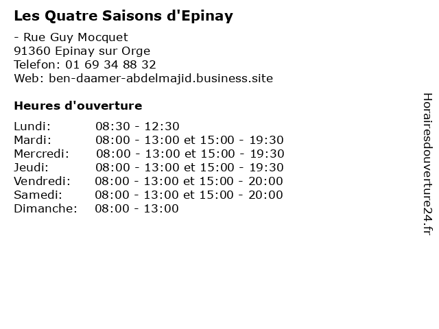 | Mardi | 08:00-13:00 et 15:00-19:30 |