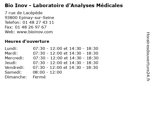 | Lundi | 07:30-12:00 et 14:30-18:30 |