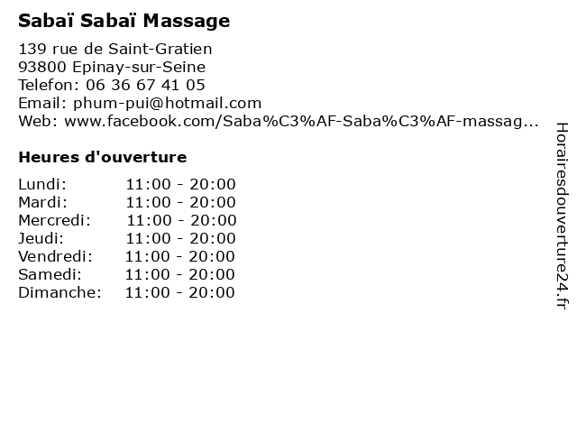 1 Lys d'Or Massage Saint Gratien (Distance: 0,72 km) 27 Boulevard du Maréchal Foch, 95210 Saint-Gratien d'or, gratien, lys, massage, saint 2 Massage Tuina & EFT Emotional Fonctional Techniques (Distance: 2,49 km) 76 Rue d'Enghien, 95600 Eaubonne eft, emotional, fonctional, massage, techniques, tuina 3 Massage et Plénitude (Distance: 7,55 km) , Rue François Mansart, 95140 Garges-Lès-Gonesse bien-etre, et, massage, massages, plénitude, relax, sante 4 Lune Beauté - Salon de massage (Distance: 7,84 km) 34 Rue Edouard Vaillant, 92300 Levallois-Perret beauté, bien-être, de, institut de massages, lune, massage, massages, relaxation, salon 5 Massage Nuru (Distance: 7,95 km) 32 Rue Jules Guesde, 92300 Levallois-Perret massage, nuru, relaxation, soins, spa 6 Chang Noi Thai Massage (Distance: 8,29 km) 139 Rue de Paris, 95150 Taverny bien-etre, chang, massage, massages, noi, relax, sante, thai |