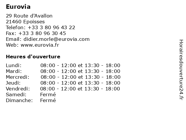 | Lundi | 08:00-12:00 et 13:30-18:00 |
