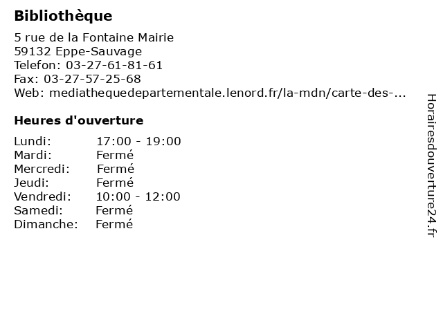 1 Bibliothèque (Distance: 7,08 km) . rue du Maréchal Foch, 59740 Liessies bibliothèque, cd audio, cd.rom, livres, revues 2 Bibliothèque (Distance: 10,01 km) . Place Foch, 59132 Ohain bibliothèque, cd audio, cd.rom, livres, revues 3 Bibliothèque (Distance: 11,22 km) . Rue de la place, 59740 Felleries bibliothèque, cd audio, cd.rom, livres, revues 4 Bibliothèque (Distance: 12,40 km) 9 Rue J.Jaures, 59216 Sars-Poteries bibliothèque, cd audio, cd.rom, livres, revues 5 Bibliothèque (Distance: 15,64 km) . rue de Landignies, 59149 Bousignies-sur-Roc bibliothèque, cd audio, cd.rom, livres, revues 6 Bibliothèque (Distance: 15,65 km) . Rue Obrechies Mairie, 59680 Damousies bibliothèque, cd audio, cd.rom, livres, revues |