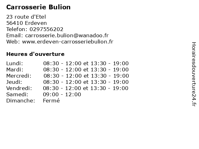 | Lundi | 08:30-12:00 et 13:30-19:00 |