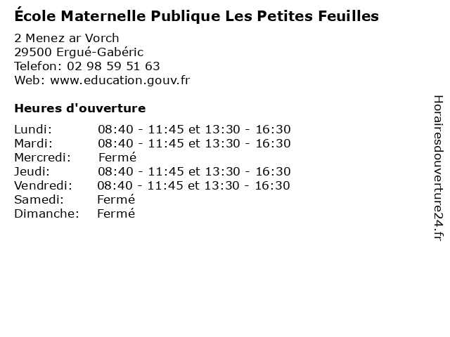 | Mardi | 08:40-11:45 et 13:30-16:30 |
