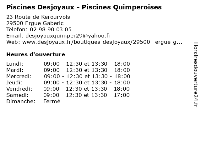 | Mardi | 09:00-12:30 et 13:30-18:00 |