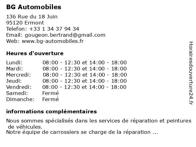 | Mercredi | 08:00-12:30 et 14:00-18:00 |