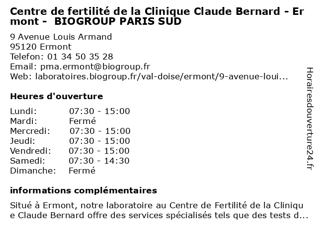 Termes de recherche pour Centre de fertilité de la Clinique Claude Bernard - Ermont - BIOGROUP PARIS SUD:la, de, bernard, paris, claude, centre, clinique, sud, ermont, fertilité, biogroup, dépistages, laboratoire de diagnostic |