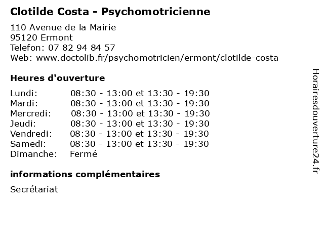 | Lundi | 08:30-13:00 et 13:30-19:30 |