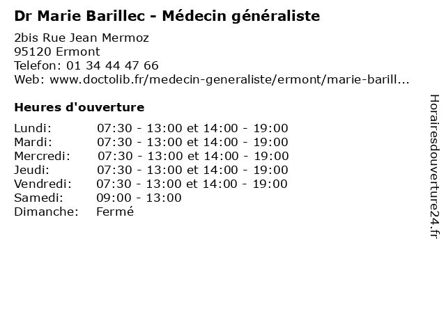 | Lundi | 07:30-13:00 et 14:00-19:00 |