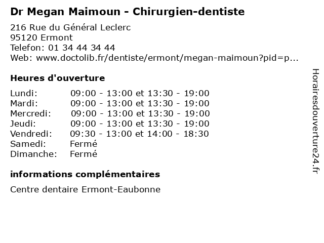 | Lundi | 09:00-13:00 et 13:30-19:00 |