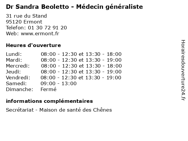 | Jeudi | 08:00-12:30 et 13:30-19:00 |