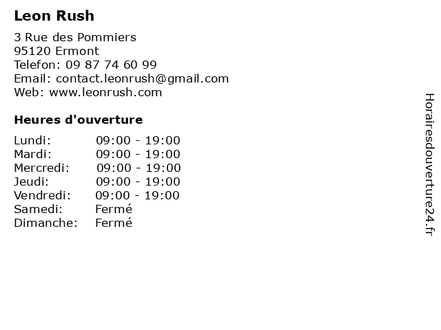 | Lundi | 09:00-19:00 |