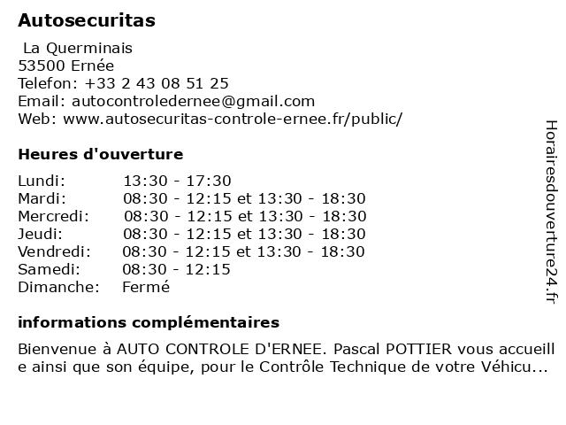 | Mercredi | 08:30-12:15 et 13:30-18:30 |