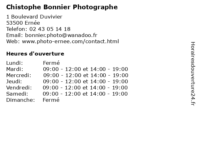 | Mercredi | 09:00-12:00 et 14:00-19:00 |