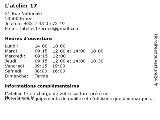Termes de recherche pour L'atelier 17:17, l'atelier |
