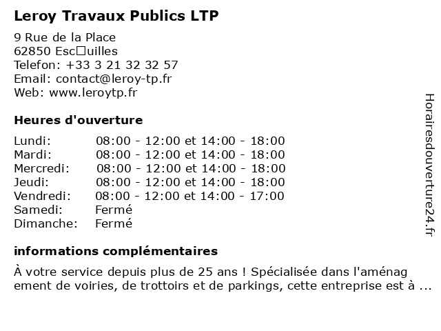 Lundi | 08:00-12:00 et 14:00-18:00 |