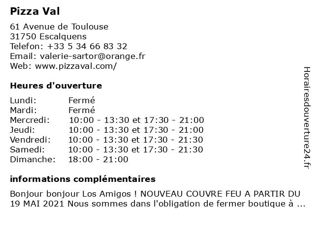| Mercredi | 10:00-13:30 et 17:30-21:00 |