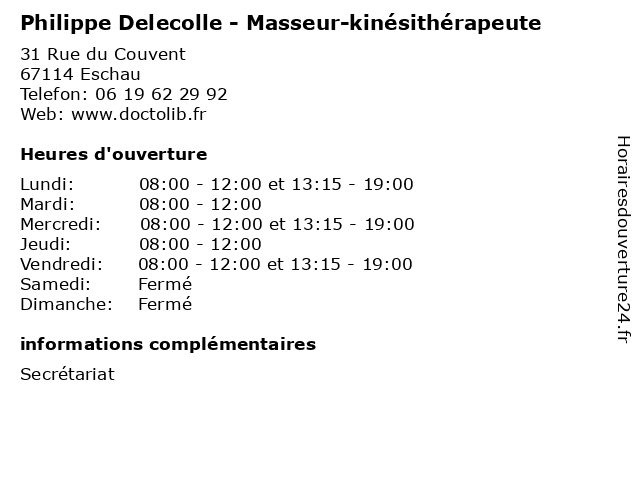 | Mercredi | 08:00-12:00 et 13:15-19:00 |