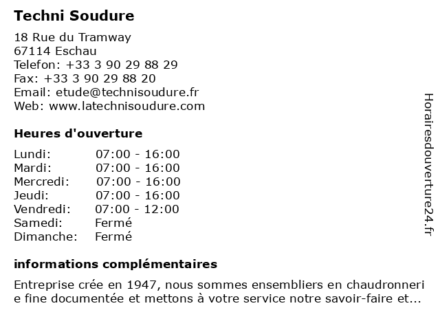 | Dimanche | Fermé |