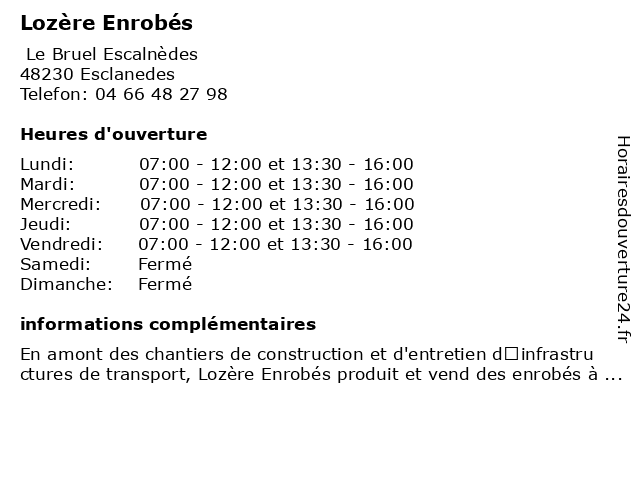 | Lundi | 07:00-12:00 et 13:30-16:00 |