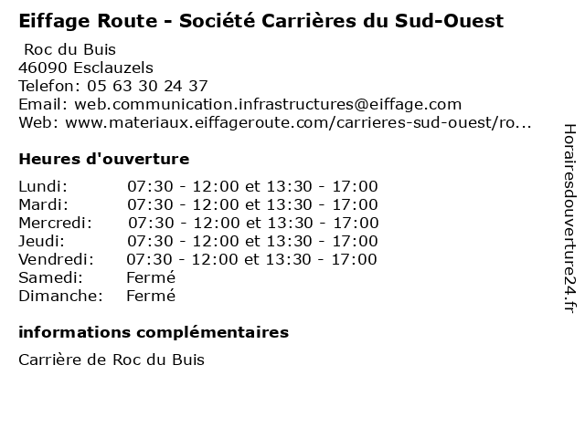 | Lundi | 07:30-12:00 et 13:30-17:00 |
