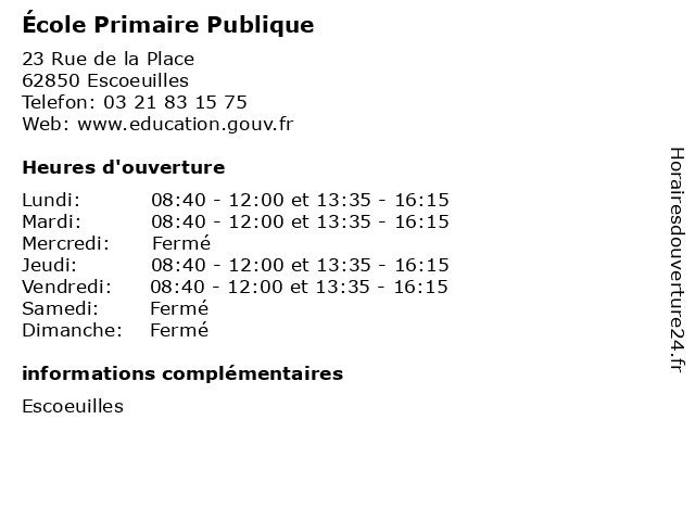 | Mardi | 08:40-12:00 et 13:35-16:15 |