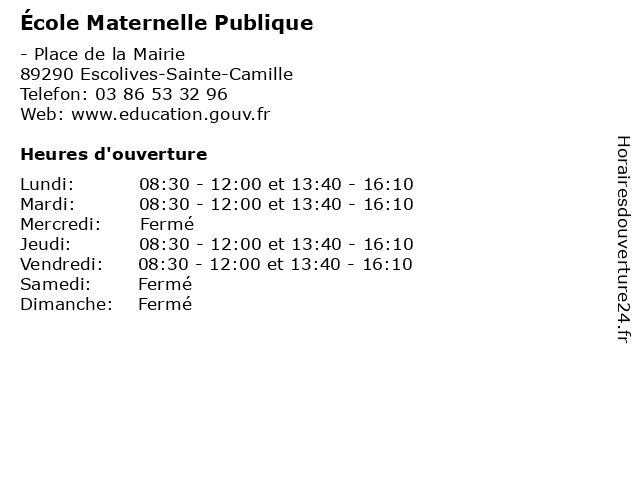 | Mardi | 08:30-12:00 et 13:40-16:10 |