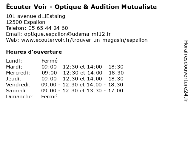 | Mardi | 09:00-12:30 et 14:00-18:30 |