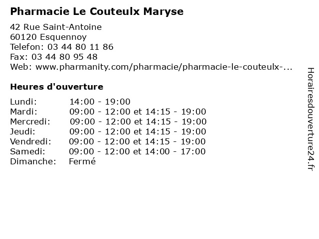 | Mardi | 09:00-12:00 et 14:15-19:00 |