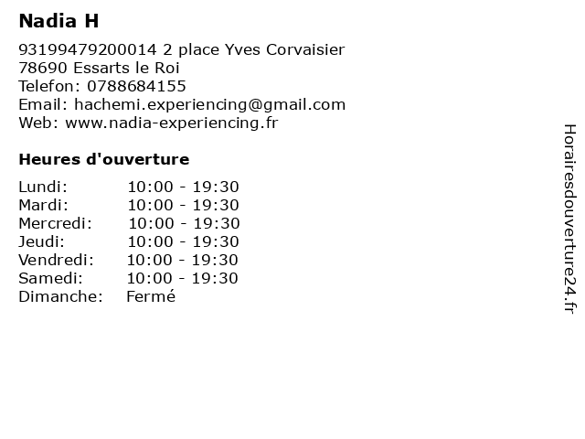 1 Maître Nadia Otmane Telba - Avocate (Distance: 12,44 km) 5 Boulevard Vauban, 78180 Montigny-le-Bretonneux avocate, avocats, civils, droits, juridiques, maître, nadia, otmane, telba 2 Kaci Nadia (Distance: 14,79 km) Cuisine Et Dessert d Ici Et d Ailleurs, 78000 Versailles kaci, nadia, restaurants 3 Maître Nadia Chehat - Avocate (Distance: 18,75 km) 10 rue Carnot, 78000 Versailles avocate, avocats, chehat, civils, droits, juridiques, maître, nadia 4 Dr. Nadia Charra - Ophtalmologie (Consultation sur rendez-vous) (Distance: 19,01 km) 7 de la Porte de Buc, 78000 VERSAILLES charra, consultation, docteur, dr., medecins, nadia, ophtalmologie, rendez, santé, sur, vous 5 Dr Nadia Rosty - Gynécologue obstétricien (Distance: 21,25 km) 4 Place du Général Leclerc, 91400 Orsay consultation, docteur, dr, gynécologue, med, médecin, nadia, obstétricien, rosty, traitement 6 Dr Nadia Ronteix - Sophrologue (Distance: 21,60 km) 24 Avenue Sadi Lecointe, 78140 Vélizy-Villacoublay dr, medecin, nadia, ronteix, sante, sophro, sophrologue |