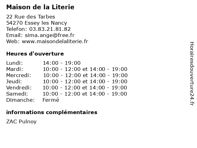 | Mercredi | 10:00-12:00 et 14:00-19:00 |