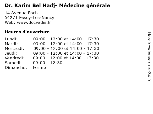 | Mardi | 09:00-12:00 et 14:00-17:30 |