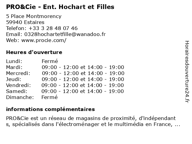 | Samedi | 09:00-12:00 et 14:00-19:00 |