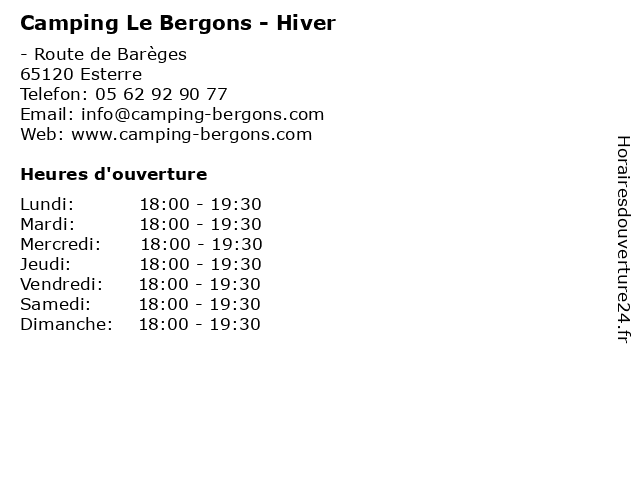 1 Camping Le Bastan (Distance: 0,00 km) - Route de Barèges, 65120 Esterre bastan, camping, le, loisirs, tourisme, vacances 2 Camping Airotel Pyrénées - Haute saison (Distance: 1,48 km) 46 avenue du Barège, 65120 Esquièze-Sère airotel, camping, en, haute, loisirs, pyrénées, saison, tourisme, vacances 3 Camping Pyrénévasion - Haute saison (Distance: 5,41 km) 1 Route de Luz Ardiden Sazos, 65120 Luz-Saint-Sauveur camping, en, haute, loisirs, pyrénévasion, réception, saison, tourisme, vacances 4 Camping Pyrénévasion - Hors saison (Distance: 5,41 km) 1 Route de Luz Ardiden Sazos, 65120 Luz Saint Sauveur camping, en, hors, loisirs, pyrénévasion, réception, saison, tourisme, vacances 5 Camping Larbey - Hors Vacances scolaires (Distance: 11,48 km) - Route de Cauterets, 65260 Pierrefitte-Nestalas accueil, camping, hors, larbey, loisirs, scolaire, scolaires, tourisme, vacances 6 Camping Le Pain de Sucre - Juin et Septembre (Distance: 12,76 km) - Quartier Couret, 65120 Gavarnie accueil, camping, de, et, juin, le, loisirs, pain, septembre, sucre, tourisme, vacances |