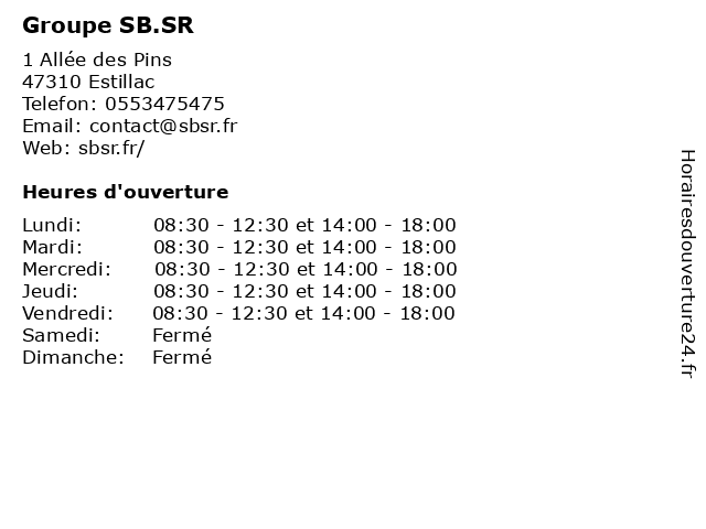 | Lundi | 08:30-12:30 et 14:00-18:00 |