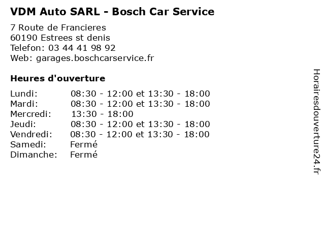 | Lundi | 08:30-12:00 et 13:30-18:00 |