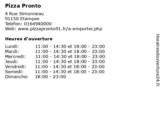 | Lundi | 11:00-14:30 et 18:00-23:00 |