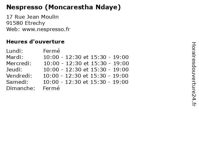 | Mardi | 10:00-12:30 et 15:30-19:00 |