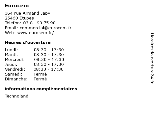 1 Industrelec (Distance: 3,83 km) 6 rue de la Jalésie, 25400 Audincourt automatismes, distribution, industrelec, industriels, maintenance, systèmes, énergie, équipements 2 Decathlon Montbeliard (Distance: 4,84 km) Zac Du Pied Des Gouttes, 25200 Montbeliard atelier de réparation de vélos, club de football, decathlon, magasin d'articles de ski, magasin d'équipements sportifs, magasin de matériel de camping, magasin de matériel de pêche, magasin de vélos, magasin de vêtements de sport, montbeliard 3 Bigship (Distance: 5,69 km) 16 Rue du Commerce, 90400 Trevenans accastillage, bateaux, bigship, nautisme, plaisance, équipements 4 Vap'in La Terrasse (Distance: 7,10 km) 38 Rue de Mathay, 25700 Valentigney cigarettes électroniques, e-liquide, la, terrasse, vap'in, vapote 5 Detec Automatisme (Distance: 14,45 km) 4 rue d'aspach, 90000 Belfort automatisme, commandes numériques, detec, électricien, électroniques 6 Pêche Exotique (Distance: 21,90 km) 29A Route de Belfort, 68210 Dannemarie accessoires, exotique, magasin, poissons, pêche, équipements |