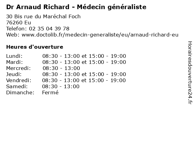 | Lundi | 08:30-13:00 et 15:00-19:00 |